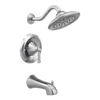 • equipped with the Moentrol® control valve allowing you to adjust both water volume and temperature. pressure-balancing feature helps maintain temperature even when other water sources in the house are in use